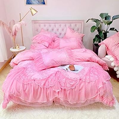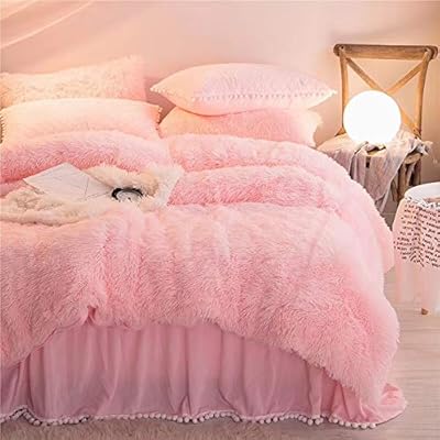 طقم مفرش سرير شتوي مقاس كينغ سرير فردي وردي أشعث فلانيلا 4 قطع غطاء لحاف 2 كيس وسادة 1 ملاءة سرير مبطنة 3 جوانب بتنورة سرير Single Amazon Ae