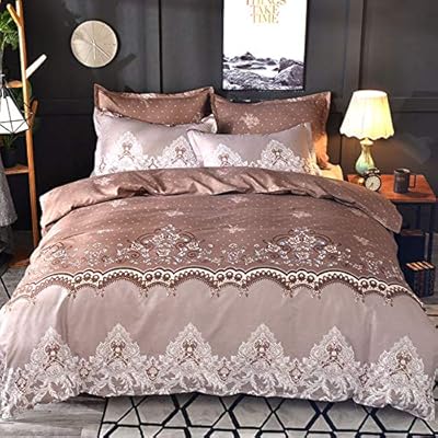 مجموعة ملاءات سرير كلاسيكية فاخرة ذات لون موحد وطباعة دانتيل حجم واحد غطاء لحاف مزدوج كوين لحاف بدون ملاءة سرير كوفي Queen 3pcs 228x228 Amazon Ae