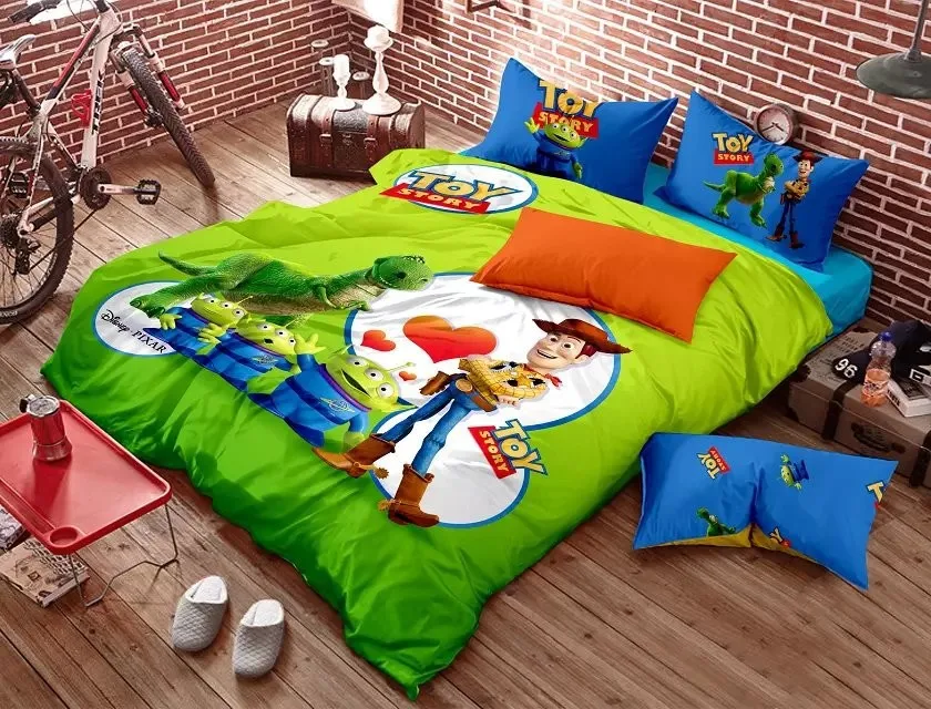 قصة لعبة أطفال مجموعة مفروشات الكرتون الملكة حجم لحاف دونا حاف الغطاء ملاءات السرير القطن الكتان نوم الأطفال الأزرق الأخضر 4 قطع Linen Tag Child Wetsuitlinen Stole Aliexpress