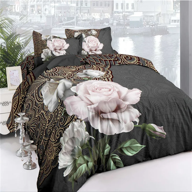 مجموعة مفارش سرير ثلاثية الأبعاد على شكل وردة حب أرجوانية للشاطئ حجم سرير كوين في حقيبة لحاف غطاء لحاف مفارش سرير رسم زيتي أرجواني اللون أزرق Bed In A Bag Bed In Bagqueen Size