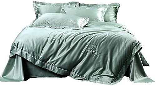 طقم أغطية لحاف من قماش الحرير المقلد 4 قطع مجموعات فراش فاخرة مجموعة ملاءات حريرية مع غطاء لحاف فائق النعومة أكياس وسادة ملاءة سرير حرير ليلكي Full 79 X 90 Amazon Ae
