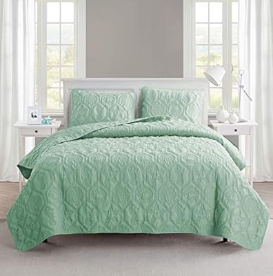 طقم لحاف Vcny Home مقاس King في بطانية جميلة للشاطئ الساحرة باللون الأخضر مجموعة من 3 قطع مع لحاف 2 شمس Amazon Ae