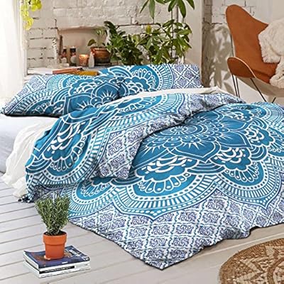 غطاء لحاف من Sophia Art مقاس كامل باللون الأزرق لوتس ماندالا غطاء لحاف بوهيمي لأسرة السرير مجموعة أغطية غطاء غطاء منقوش عليها نجمة هندية وردة ماندالا مع 2 غطاء وسادة Amazon Ae