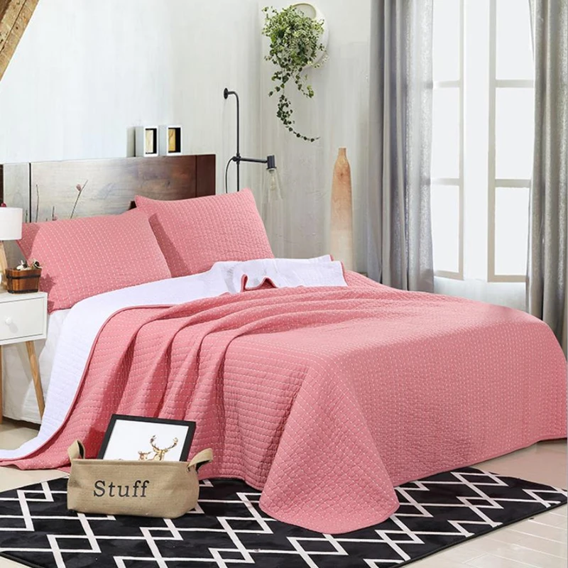 1 قطعة غطاء السرير 2 قطعة سادات الأبيض منقط خط طقم سرير المفرش الأزرق الداكن الوردي الفاخرة لحاف من القطن اللحف بطانية Aliexpress Mobile
