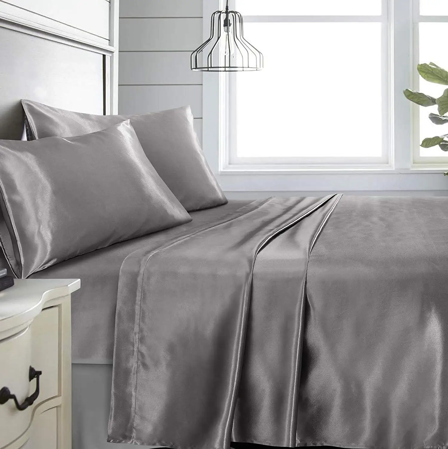 الفضة الفاخرة الساتان القطن الفراش مجموعات الملكة الملك الحجم غطاء سرير قطن مجموعة طقم سرير أغطية السرير سادات في مجموعات الفراش من المنزل والحديقة على Www Unohama Club Store