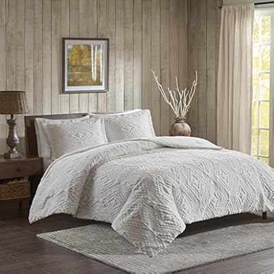 مجموعة كافر لحاف من القطيفة مطرزة بالصوف عاجي King Cal King Amazon Ae