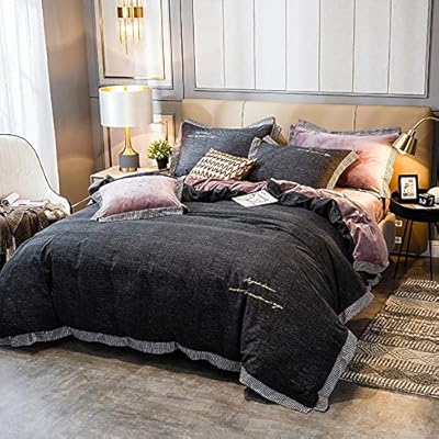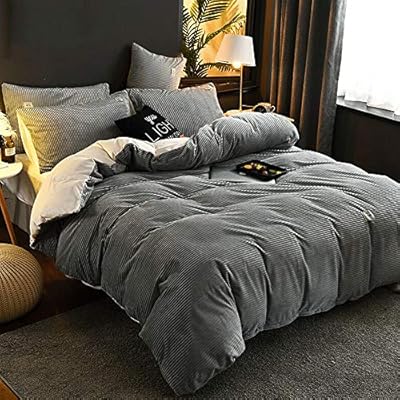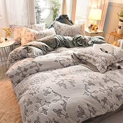 طقم لحاف ناعم ومريح مقاس كينغ رمادي مجموعة اغطية لحاف مزدوجة قطن زهري طقم اغطية سرير مزدوج مع ملاءة ملائمة مقاس مزدوج صوف ناعم دافئ 4 قطع 1 5 1 8m Bed Amazon Ae
