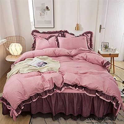 غطاء لحاف قماش ناعم للغاية وسهل العناية به طقم من 4 قطع بما في ذلك تنورة سرير غطاء لحاف غطاء وسادة مفرد أو مزدوج وردي أو طقم كبير من أربع قطع Amazon Ae
