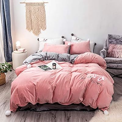 طقم لحاف مزدوج فاخر من الفلانيل 3 قطع 4 قطع مجموعة فراش من الصوف المرجاني الناعم السميك غطاء لحاف مخملي مع ملاءة سرير كيس لحاف دافئ غطاء لحاف كوين مقاس كينغ وردي