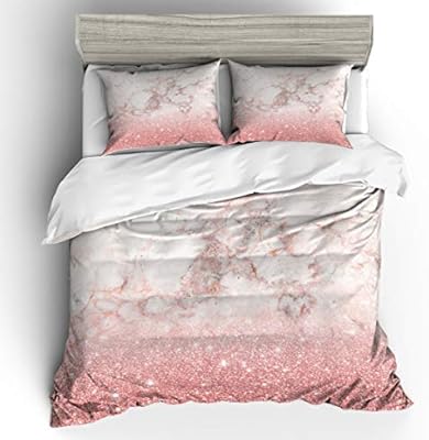 طقم غطاء لحاف 3 قطع من Musolei 3d مجموعة مفارش سرير من 3 قطع من نسيج دقيق فائق النعومة بلون وردي ذهبي رخامي مايكرو فايبر Queen Amazon Ae