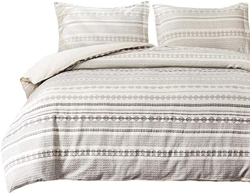 طقم غطاء لحاف من القطن 100 قطن 3 قطع مقاس كينج مع أربطة جانبية رمادية اللون من بي إف Amazon Ae