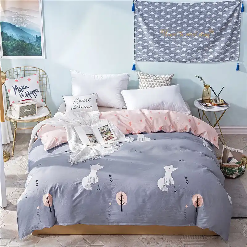 Denisroom لطيف الخوخ المعزي طقم سرير أبيض بياضات سرير حاف الغطاء طقم سرير الملكة الملك التوأم حجم Sa99