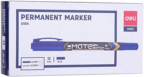 12 قطعة قلم تحديد دائم بطبقتين من Deli بتصميم نصائح مقاس 2 كتابة ناعمة مقاومة للبهتان لون كتابة ساطع سريع الجفاف لمسة مريحة منصة مكتبية للطلاب Eu10430 أزرق Amazon Ae