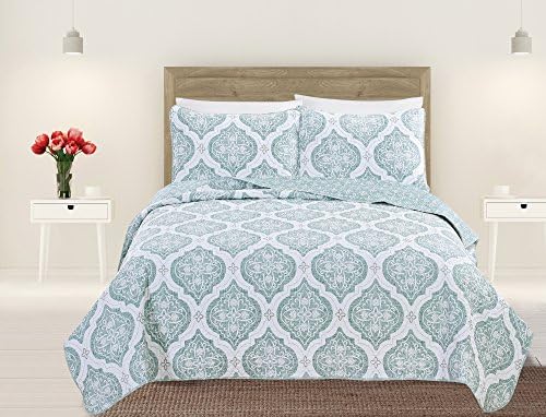 طقم لحاف فاخر 3 قطع من مجموعة أرابيسك من هوم فاشن ديزاينز غطاء سرير ناعم من الألياف الدقيقة لجميع فصول السنة مع غطاء سرير بعلامة تجارية فريدة من نوعها Full Queen