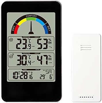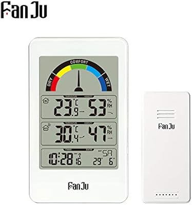 Fanju منبه رقمي على مدار الساعة الإلكترونية اللاسلكية مقياس الرطوبة درجة الحرارة مؤشر الراحة مؤشر داخلي مقياس حرارة خارجي ساعات المكتب والطاولة Gooum