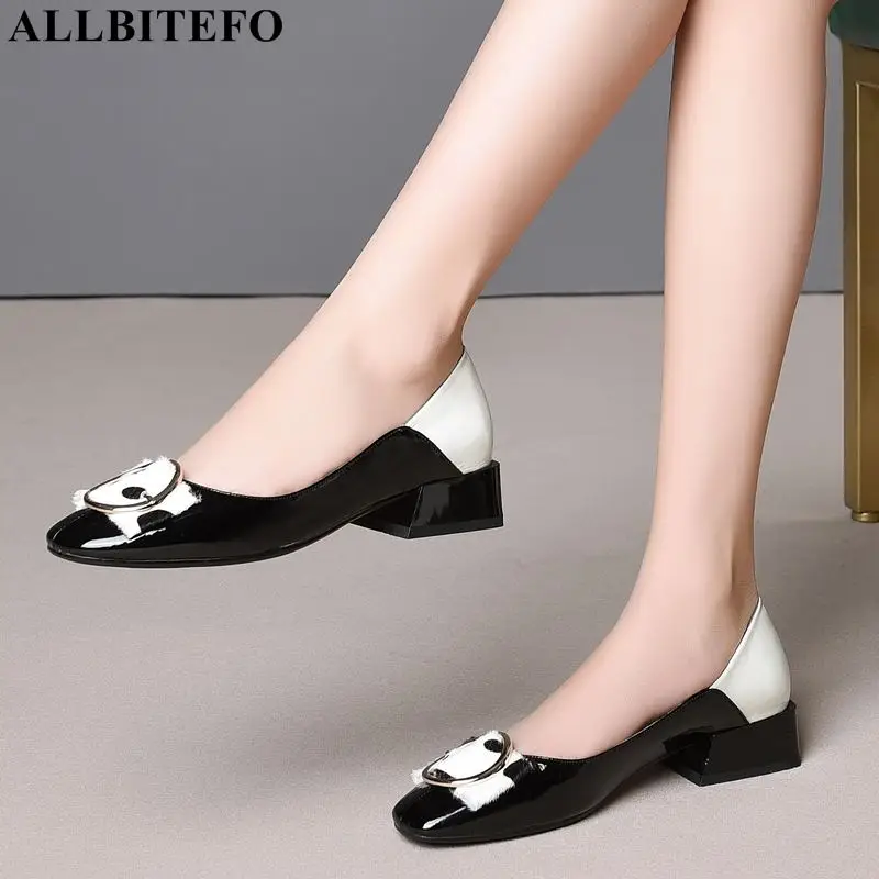 Allbitefo ماركة الموضة جلد طبيعي منخفضة الكعب أحذية النساء مريحة خليط عالي الجودة الألوان مكتب السيدات الأحذية في أحذية كلاسيكية كعب متوسط للنساء من أحذية على Buy Unohama Club Store