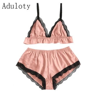 Aduloty مثير بيجامة من الساتان الدانتيل مثلث كأس البرازيل الحرير مثل الحافات مريحة الملابس الداخلية الصدرية دعوى السيدات الصيف السراويل منامة Leather Bag