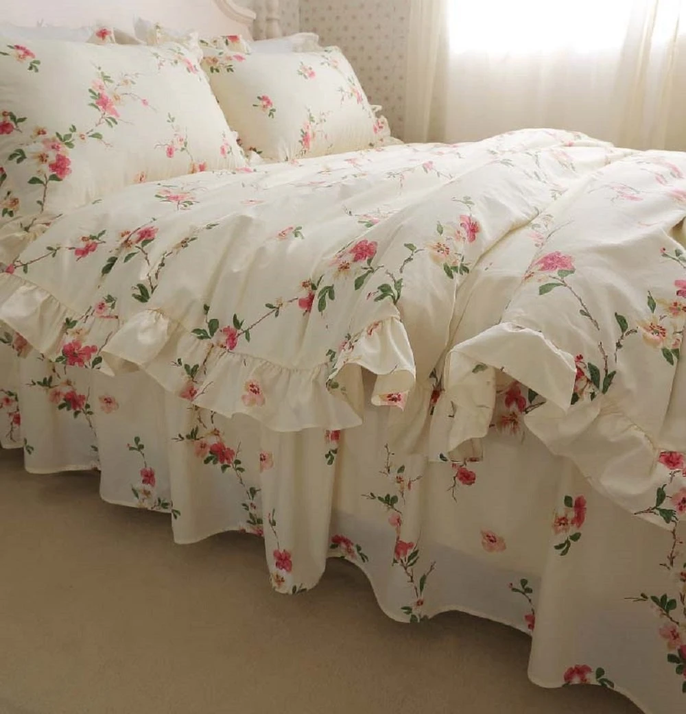 Fadfay فراشة مرج الزهور مجموعة مفروشات أنيقة الفرنسية البلد نمط خمر الكشكشة حاف غطاء السرير مع الدانتيل التوأم جميع الحجم Cover Bed Duvet Cover Bedbedding Set Aliexpress