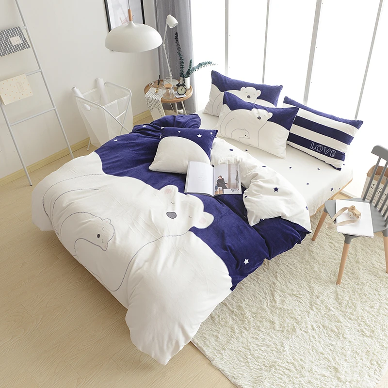 Ivarous الكرتون الدب القطبي الشتاء الدافئة الكشمير طقم سرير غطاء لحاف سميكة التوأم الملكة حجم 4 6 قطعة مجموعات لحاف السرير Bedding Set Comforter Setduvet Cover Twin Aliexpress