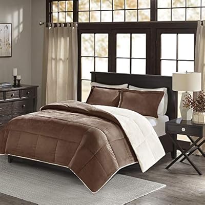 طقم لحاف صغير من Madison Park Jackson مصنوع من قماش مخملي مضلع وعكس إلى بربر كامل ملكة بني داكن Amazon Ae
