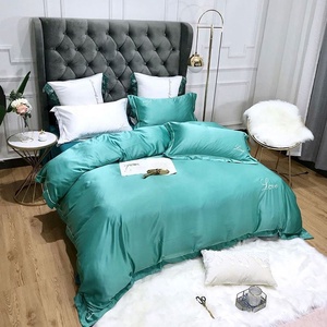التطريز الحرير الفراش مجموعات الأخضر الدانتيل حافة المفرش حاف طقم أغطية المعزي المخدة Aliexpress