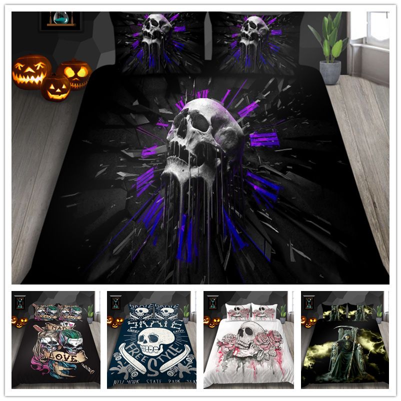 هالوين الجمجمة طقم سرير حاف الغطاء واحد مزدوج كامل الملكة الملك الحجم المعزي غطاء لحاف غطاء الفراش كيس وسادة مجموعات الفراش Aliexpress