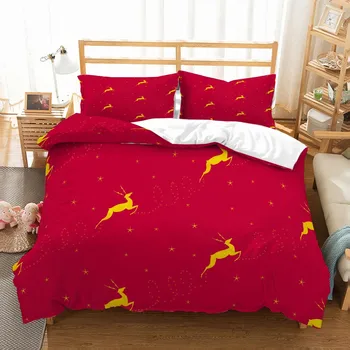 القفز الذهب الأيائل الكرتون طقم سرير عيد ميلاد سعيد لحاف من الألياف الدقيقة مجموعة غطاء فاخر الأحمر المنزل المعزي مجموعة كاملة الملكة الملك Leather Bag