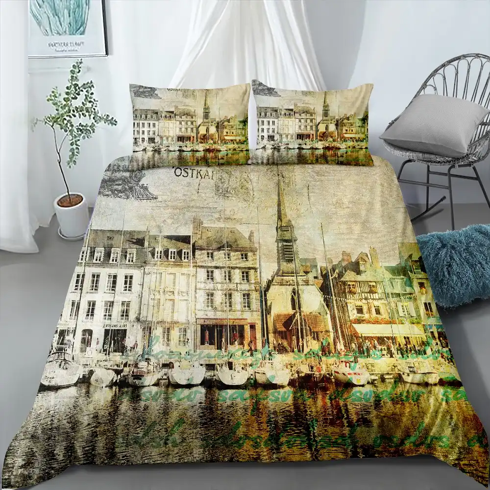 الرجعية نمط أغطية سرير مجموعة الحديثة سيتي فيو مزدوجة المعزي مجموعة لندن المباني طباعة طقم مفارش أس رة منزلية 2 3 قطعة مع المخدة مجموعات الفراش Aliexpress