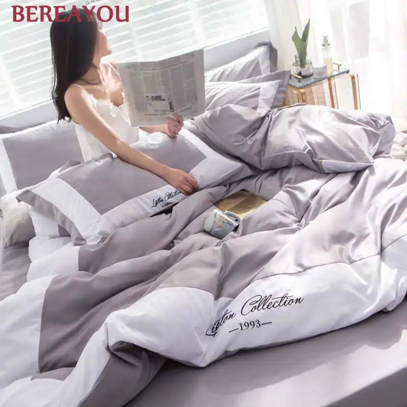 مجموعات الفراش الفاخرة ايوسل الصيف حاف طقم أغطية أغطية أزرق رمادي أغطية سرير الملكة الملك الحجم للمنزل مزدوجة المعزي جوجو دي كاما مجموعات الفراش Aliexpress