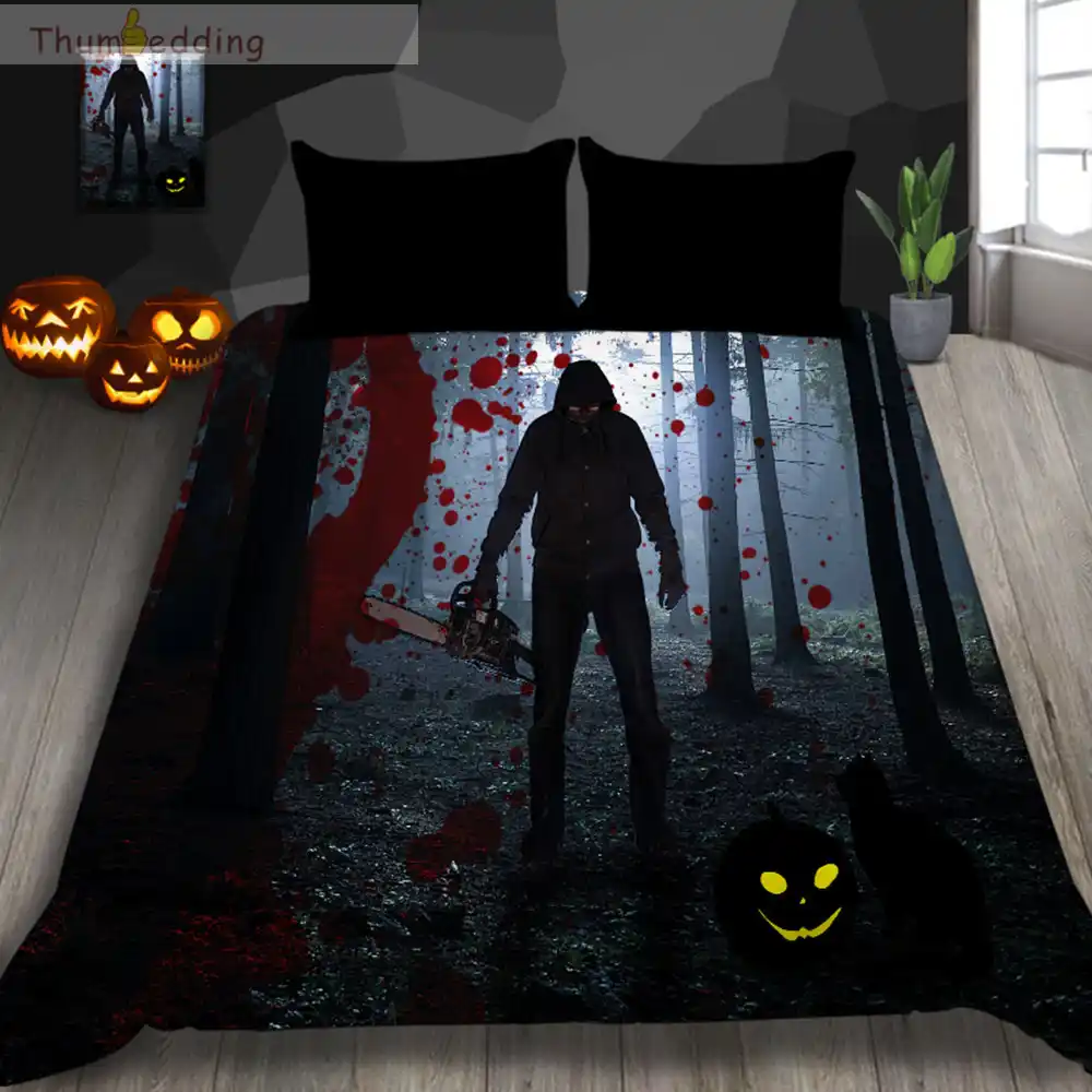 Thumbed مخيف الدم ليلة طقم سرير ثلاثية الأبعاد هالوين حاف الغطاء التوأم كامل الملكة الملك مهرجان الغربية الديكور طقم سرير 3 قطعة مجموعات الفراش Aliexpress