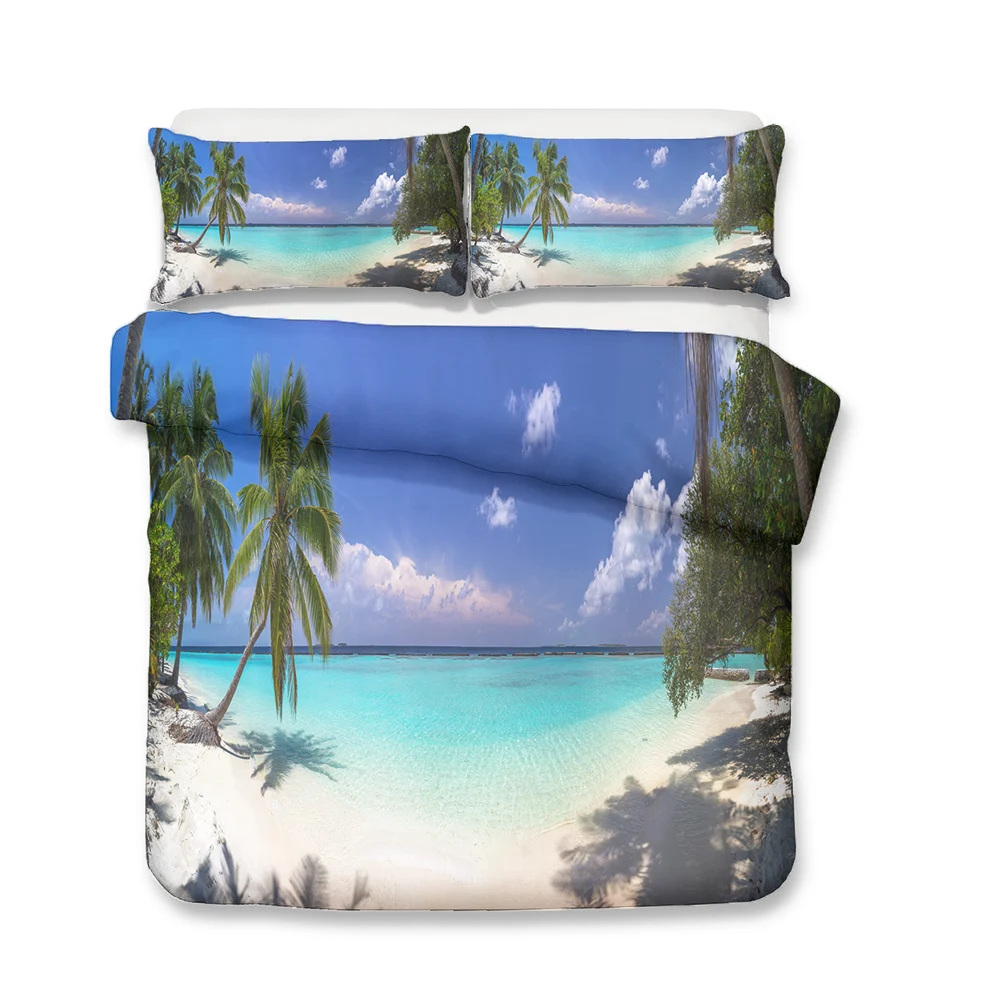 غطاء السرير حاف مجموعة غطاء ثلاثية الأبعاد الشاطئ المطبوعة المنسوجات المنزلية مادة لينة مع غطاء الفراش المخدة Aliexpress