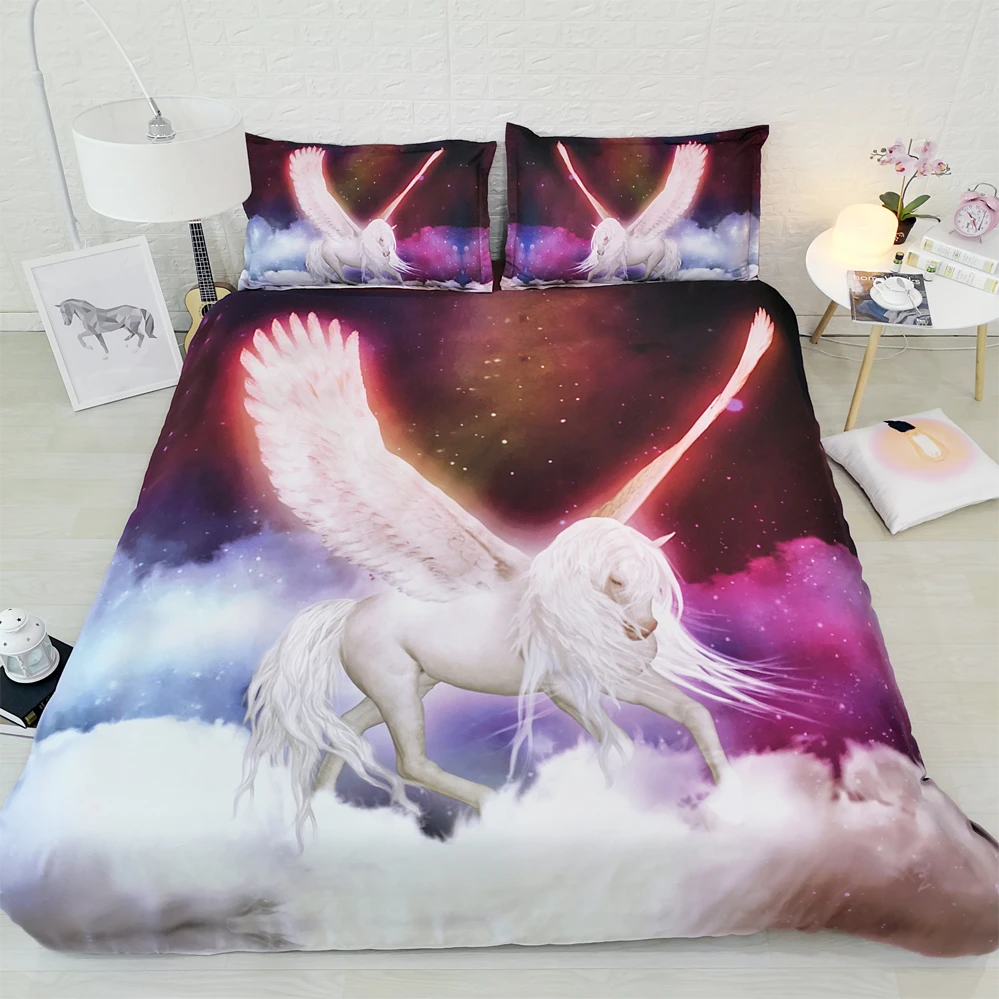 Jf 020 تحلق الأبيض الحصان مع أجنحة الفتيات ملاءات بيغاسوس الملكة كاليفورنيا الملك الحجم الفراش مجموعة 3d لحاف بطانية غطاء التوأم Bedding Set 3d King Size Bedding Setking Size Aliexpress