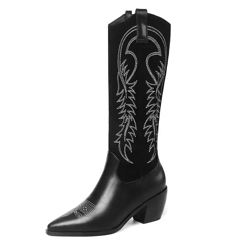 Lasyarrow قبعات رعاة البقر الغربية أحذية للنساء مدبب تو راعية البقر الأحذية ساحة الكعوب حذاء برقبة للركبة الرجعية النساء أحذية 2020 جديد بوت للركبة Aliexpress
