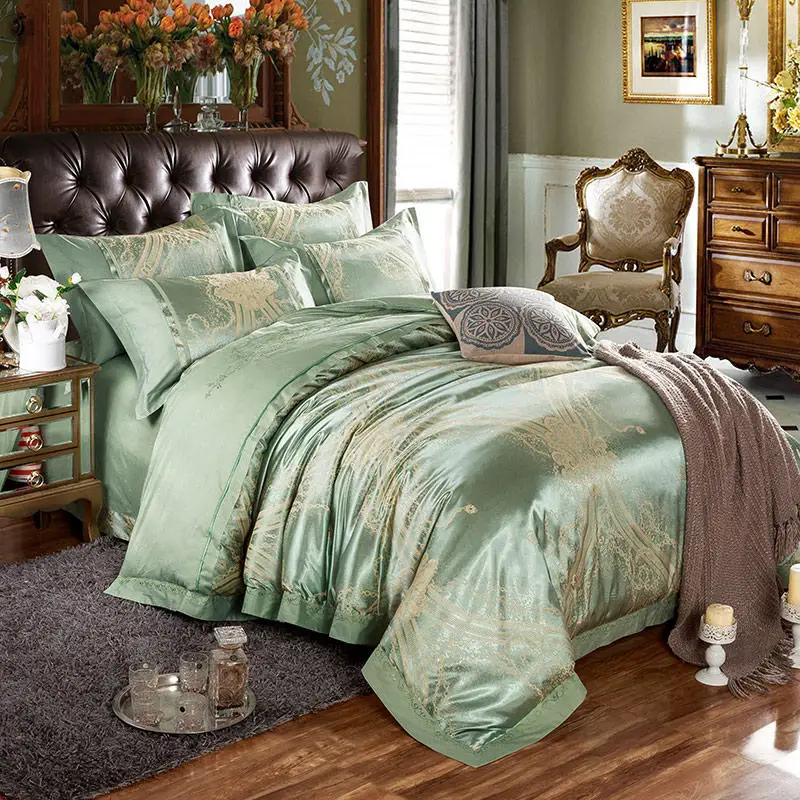 قماش الجاكار الفاخر طقم سرير الملك الملكة حجم 4 قطعة الساتان حاف مجموعة غطاء المنسوجات المنزلية البيج المفارش طقم سرير أغطية سرير King Queen Size Bedding Set Kingduvet Cover Set Aliexpress