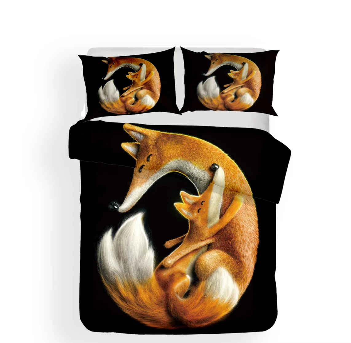 طقم سرير حيوان لطيف أم طفل ثعلب دافئ حاف مجموعات واحدة مزدوجة المفارش طفل بنين بنات غرفة غطاء السرير أصفر أسود مجموعات الفراش Aliexpress