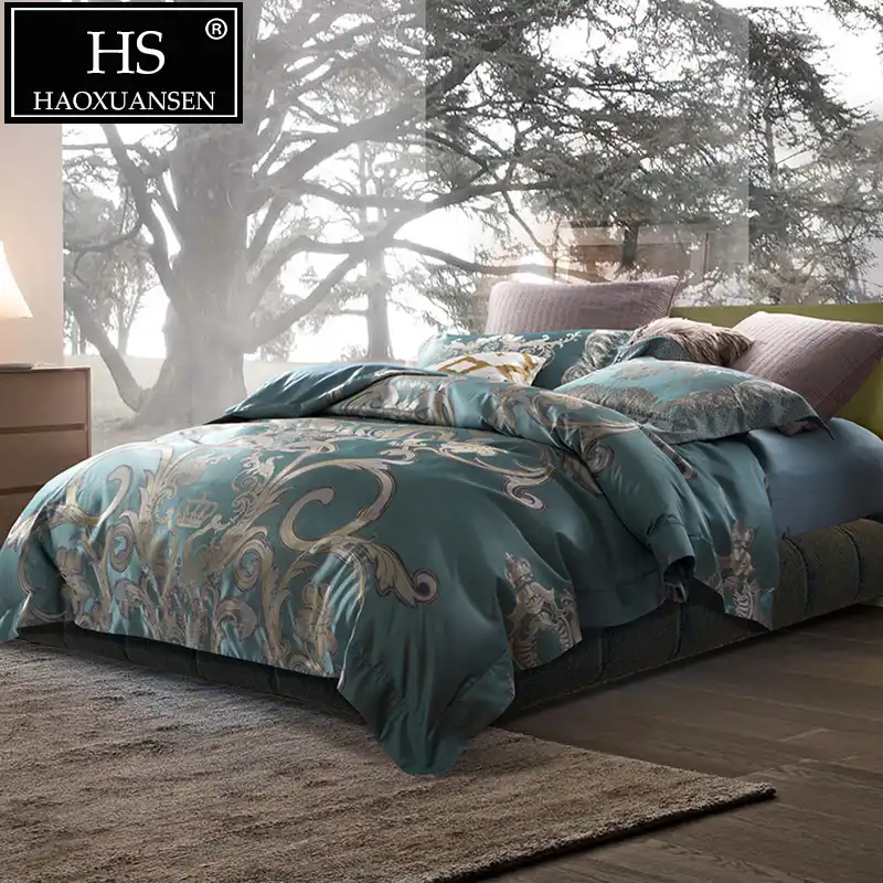 سماوي الفاخرة تاج الأزهار اليورو أغطية السرير من قماش الجاكار مجموعات المصري قطن حرير 4 Pcs أغطية سرير مجموعة الملكة الملك مزدوجة الكبار طقم سرير مجموعات الفراش Aliexpress