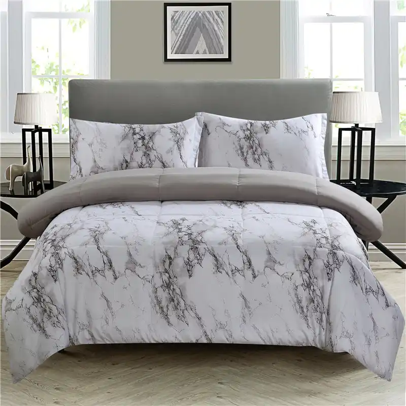 لينة رقيقة و ضوء البوليستر ملء لحاف مجموعات لحاف السرير الملك الملكة حجم الحجر الملمس الطباعة مبطن السرير لحاف بطانية Aliexpress