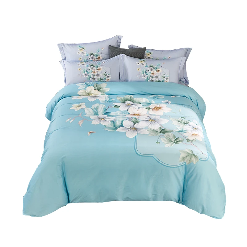 طقم سرير أزرق فاتح حجم الملكة الملك الحجم 100 القطن الأزهار طباعة حاف مجموعة غطاء 200 230 سنتيمتر 220 240 سنتيمتر