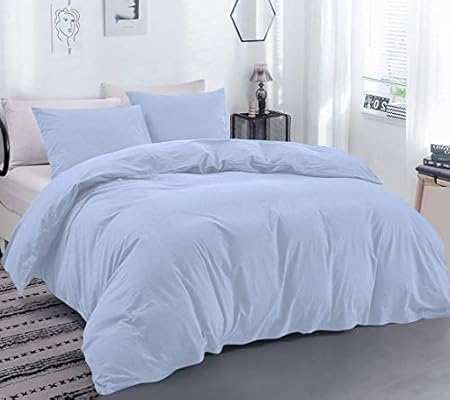 مجموعة غطاء لحاف فاخر فاخر من هاي كوتون من القطن المصري عالي الجودة 800 خيط قطن مصري ازرق فاتح Super King 3 Piece Amazon Ae