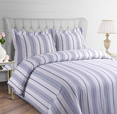 مجموعة أغطية اللحاف المخططة من Luxor Treasures من القطن المصري 1000 خيط ازرق فاتح King California King Amazon Ae