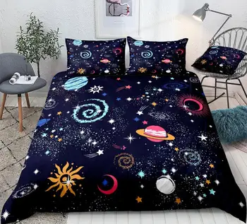 غالاكسي حاف مجموعة غطاء الفضاء النجوم الفراش الاطفال الفتيان الفتيات غطاء لحاف أسود الملكة المنسوجات المنزلية الكرتون الأسود 3 قطعة دروبشيب Leather Bag