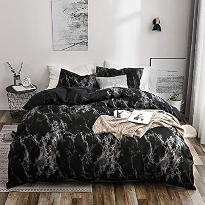 مجموعات غطاء اللحاف مجموعات الفراش خامة بوليستر مسامية تصميم نسيج رخام بسيط كيس وسادة غطاء لحاف اسود 220 240cm Amazon Ae