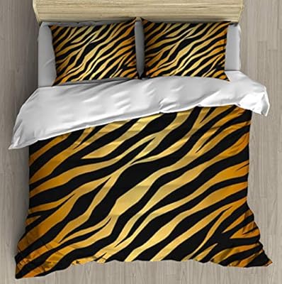 مجموعة مفروشات مطبوعة ناعمة بلا درز خطوط خطوط النمر الأسود والذهبي نمط أنيق غطاء لحاف بري غطاء وسادة نمط مجموعة غطاء لحاف مع غطاء وسادة حجم مزدوج قطن King Size Amazon Ae