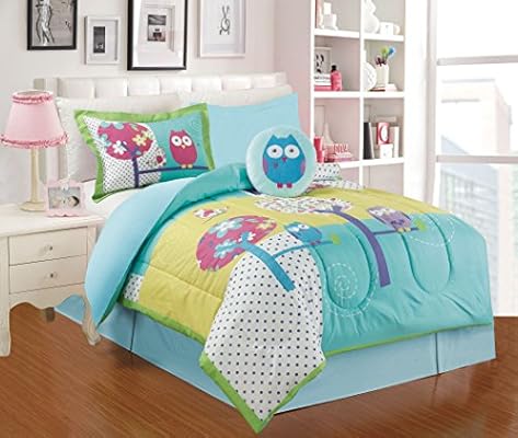 طقم لحاف 4 قطع بتصميم البومة من أول امريكان كوليكشن زهري Twin Comforter Amazon Ae