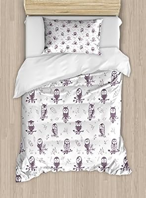 مجموعة غطاء لحاف لونار دودل من لونارابل شخصيات بومة ذات وجوه مضحكة فروع شجرة طقم سرير من قطعتين مزخرف مع وسادة مزخرفة حجم مزدوج باذنجاني شاحب بنفسجي وأبيض Amazon Ae