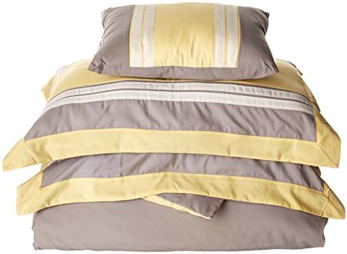 مجموعة لحاف 4 قطع مخططة باللون الأسود والوسائد المزخرفة اصفر King Amazon Ae