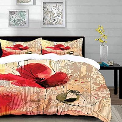 مجموعة الفراش زهرة الأحمر الخشخاش زهرة البيج الزهور المائية تصميم الفن الرقمي طباعة النباتات الربيع أبيض وأسود غطاء لحاف واحد وسائد 50 80 سم Amazon Ae