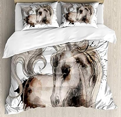 مجموعة غطاء لحاف الحصان من Lunarable صورة فنية على شكل حيوانات مزرعة حيوان الجرونج مجموعة سرير مزخرفة من 3 قطع مع وسادتين مزخرفين مقاس كوين لون بيج وأسود اشتري اون