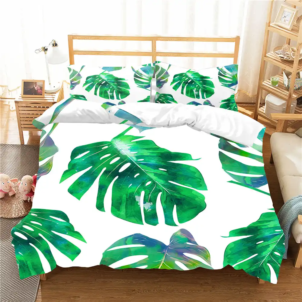 ثلاثية الأبعاد طباعة لحاف لتغطية الفراش مجموعة النباتات الاستوائية الخضراء أغطية سرير مجموعة مع المخدة نابض بالحياة المفارش التوأم سرير مل Leather Bag