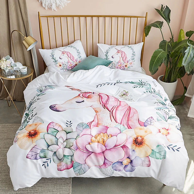 الكرتون فرش أطفال البياضات مجموعة قوس قزح يونيكورن لحاف المعزي غطاء Pillowلنا التوأم الاطفال المفارش حاف مجموعة غطاء مجموعات الفراش Aliexpress